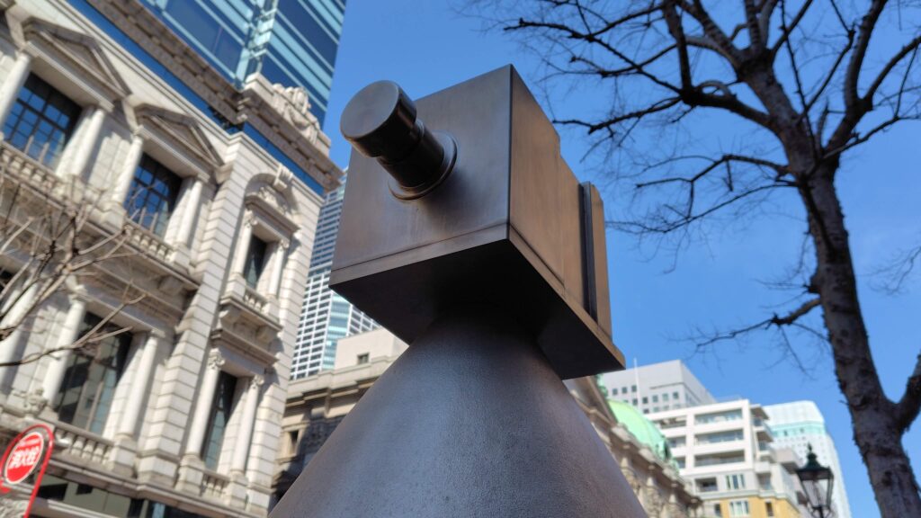 円錐形の上部には、1839年フランスで発明された写真機「ダゲレオタイプ」のオブジェが飾られています。